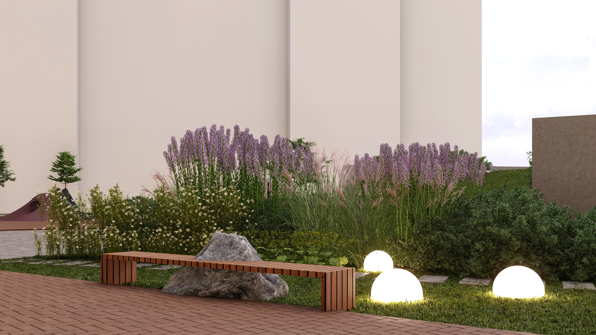 Corso Residence: ландшафтный дизайн, где дыхание Байкала сливается с городской жизнью. Мы воссоздали кусочек байкальской природы, используя местные растения - создают устойчивую красоту. Цветовая палитра пастельных оттенков - язык, на котором пространство говорит с душой, рождая чувство стиля и вкуса.